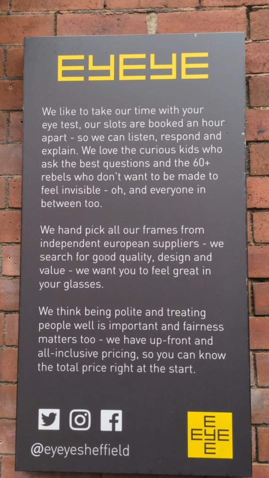 You should book an eye test with us, as our eye tests are very good. They are good as we allow an hour and make good use of it - taking time to listen to you, understand the visual demands of your life at work rest and play … more